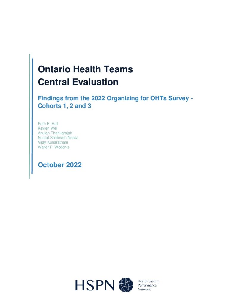Ontario Health Teams Central Evaluation Findings from the 2022 Organizing for OHTs Survey – Cohorts 1, 2 and 3