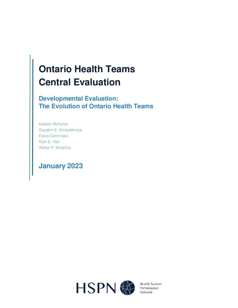Ontario Health Teams Central Evaluation Developmental Evaluation: The Evolution of Ontario Health Teams